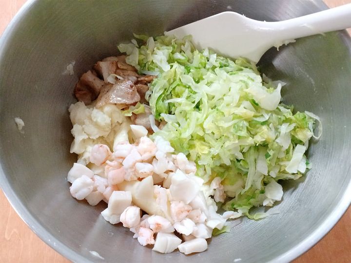 3. 【小麦粉不使用】キャベツとじゃがいもで「ポテサラ風お好み焼き」作ってみた!口溶けクリーミー♡【農家直伝】