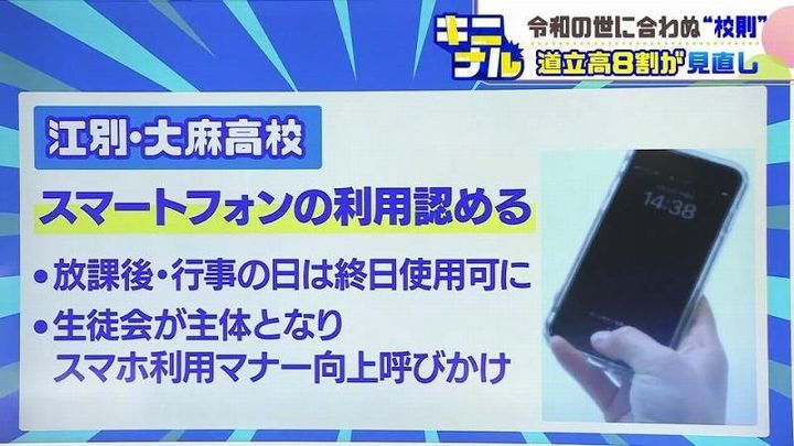 江別市にある大麻高校では、2023年度にそれまで禁止されていたスマートフォンの使用を、一部解禁とする見直しを行いました。