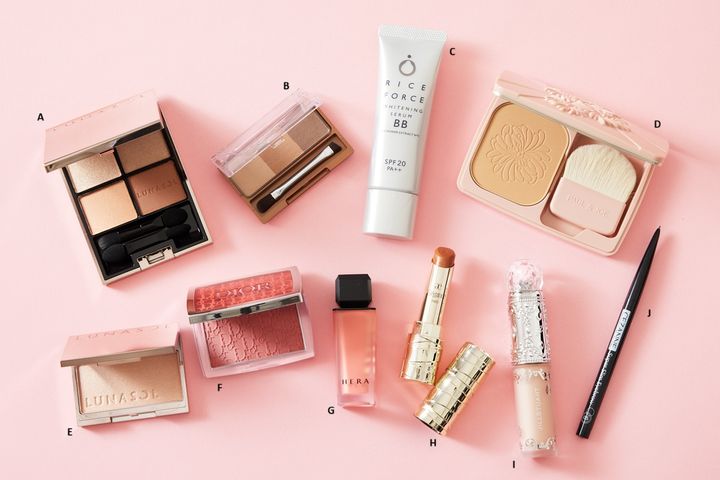 ポイントメイクにピンクやローズではなくベージュやオレンジ系を使うことで、一気に今年らしい華やかさが手に入りますよ。