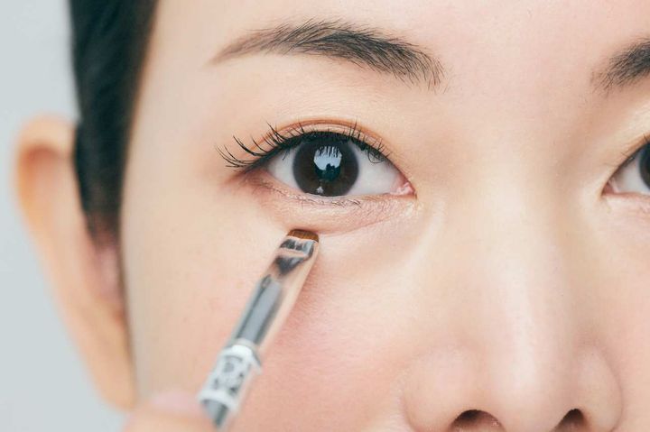 ①目の下の内側から外側に向かってコンシーラー(使用アイテムI)を塗ります