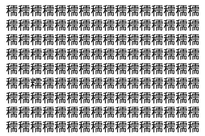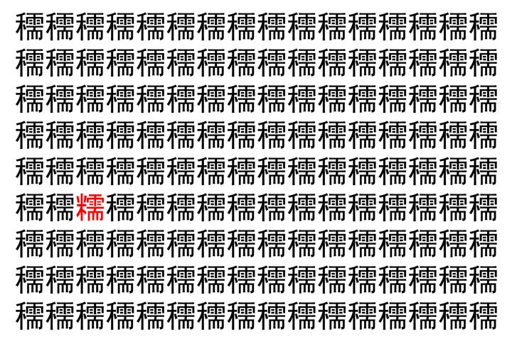 2. 【脳トレ】「穤」の中に紛れて1つ違う文字がある!?あなたは何秒で探し出せるかな??【違う文字を探せ!】