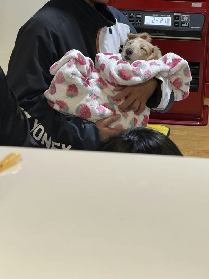 中学生が母性出した理由に1万いいね!毛布で包まれた愛犬の寝顔がたまりません
