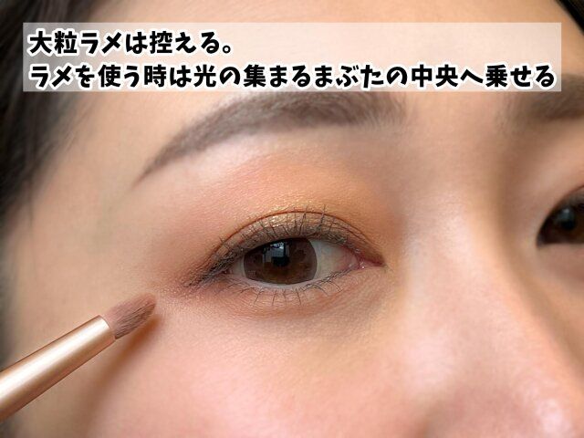 もしラメ入りのキラッと可愛いアイシャドウを使いたいなら範囲は狭く、まぶたの中央にちょんと乗せるようにしてみてください。