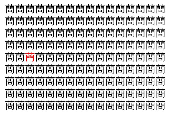 【脳トレ】「蔄」の中に紛れて1つ違う文字がある!?あなたは何秒で探し出せるかな??【違う文字を探せ!】