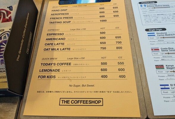 2023年05月11日に国内初のコーヒー販売を開始。エスプレッソ(390円)やアメリカーノ(390円)、カフェラテ(450円)、ソイラテ(500円)、抹茶ラテ(500円)、モヒートラテ(500円)、キャラメルラテ(500円)、ヘーゼルナッツラテ(500円)、ココナッツラテ(500円)など、豊富なメニューがそろっています。