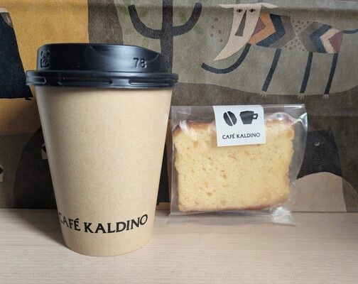ナッツのような香ばしさとミルクチョコレートを思わせる、やわらかな苦味のブレンドコーヒー。温度が下がるとさわやかな酸味も感じられ、バランスのとれた味わいを楽しめます。レジ横には、ちょっとした洋菓子が販売されていました。今回は、カフェカルディーノ「レモンケーキ」とコーヒーのセットを選択。