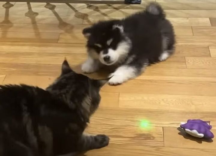 光をパクッ!? レーザーポインターで遊ぶ子犬さんの可愛すぎる反応