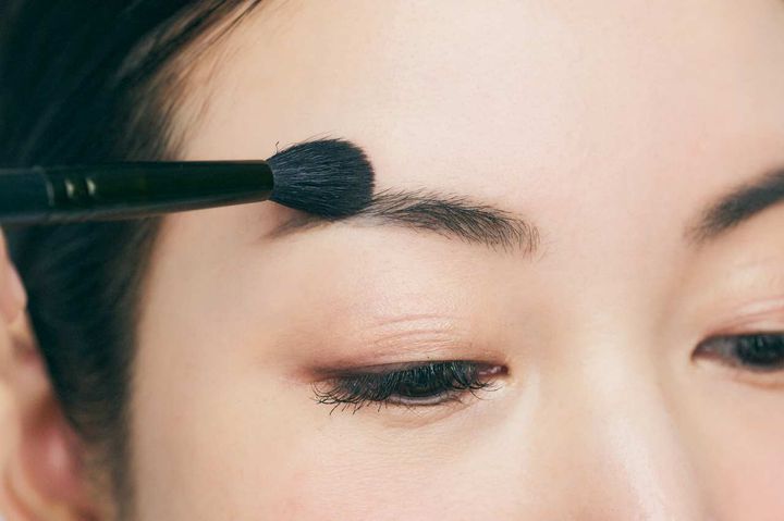 ②眉周りにシェーディング(使用アイテムB)を足すことで立体感が出ます。