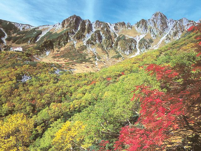約2万年前、氷河のゆったりとした流れに浸食され形成された半円形の窪地で平に広がった地形を、たたみ千畳の広さと形容したことから命名された「千畳敷カール(せんじょうじきかーる)」。標高2612mの千畳敷へは、麓のしらび平からロープウェイで約8分。遊歩道があり、絶景を見ながら1周50分ほどのハイキングが楽しめます。夏には高山植物、秋にはナナカマドなどの鮮やかな紅葉と、四季折々の風景に出合えますよ。