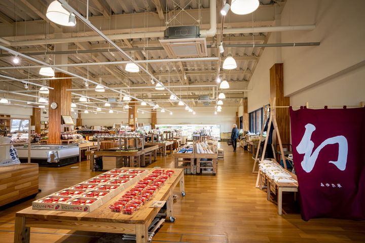 長野県北東部に位置する飯山市は、日本の原風景が残るのどかな里山。そんな飯山市にある道の駅「花の駅 千曲川(みちのえき はなのえきちくまがわ)」は、新鮮な野菜や果物をはじめ、おみやげなどが購入できる直売所や、カフェが集まる複合型の施設です。