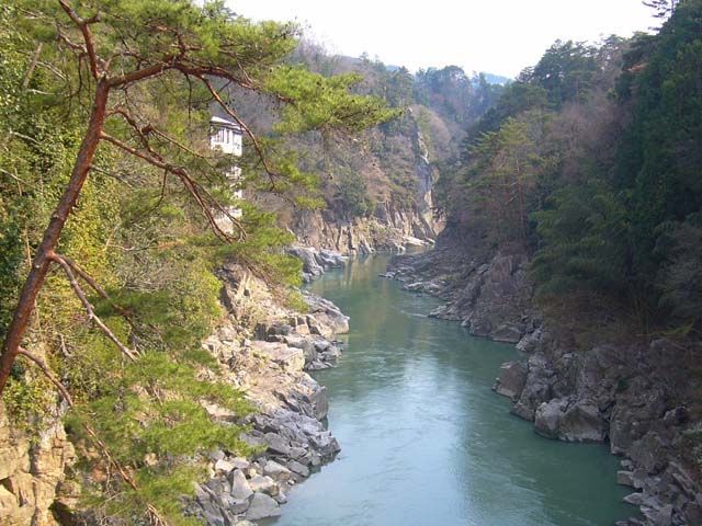 それぞれの奇岩は、形になぞらえ屏風(びょうぶ)岩、烏帽子(えぼし)岩、象岩、獅子岩などとよばれています。秋にはエメラルドグリーンの木曽川と紅葉の色のコントラストが訪れた人の目を楽しませてくれます。(臨川寺より入場の場合、拝観料が必要)