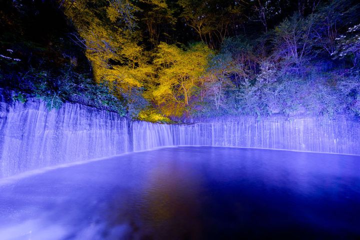 夏と冬の夜には、ライトアップイベントも期間限定で開催され、日中とはまた違ったミステリアスな滝を見ることができます。美しい水のアートに癒やされること間違いなしです。
