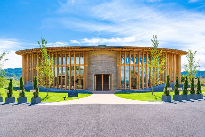 長野自動車道長野ICすぐそばにある「OYAKI FARM BY IROHADO(おやき ふぁーむ ばい いろはどう)」は、2025年に創業100年を迎えたおやきの老舗「いろは堂」の製造工場を併設した店舗です。長野県産木材を使用した建物は、ぬくもりがありながらもスタイリッシュで、とても印象的。この施設の約6割の敷地面積を占める工場部分では年間500万個の製造が可能。国内でも最大級の製造量を誇っています。