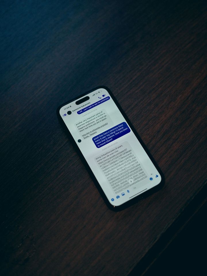 2013年から始まったふたりの長い対話の断片。絵文字が飛び交うこともあれば、縄文時代など日本文化についてのやりとりでは本や資料のスクリーンショットが届くこともあったという。