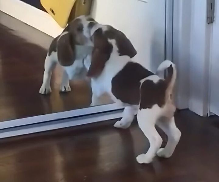 「だれなの?」鏡に映る自分にびっくりした犬さんの反応が可愛い