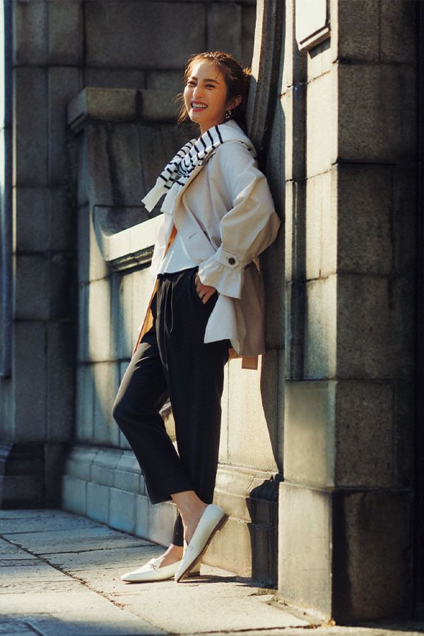 ハイソな白ローファーがヨーロッパを思わせる横浜の石畳にしっくりマッチ