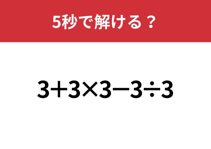 これが解けたら困ることなし!「3+3×3−3÷3」5秒で解ける?