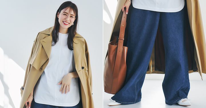 デニムはベージュトーンを合わせると品よくキレイめに仕上がる