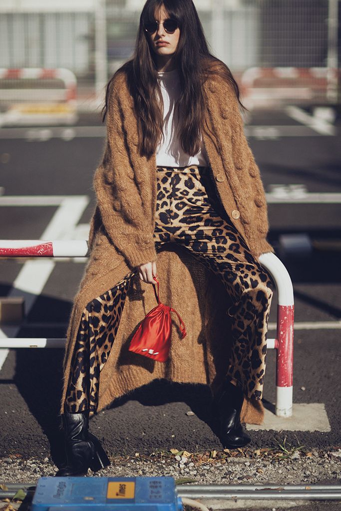 これで黒小物はややハード。キャッチーな赤だから親しみが残る。 キャメルロングニットカーディガン/スカリオーネ(トレメッツォ) 白Tシャツ/ROLLA’S(ジャック・オブ・オール・トレーズ プレスルーム) レオパード柄サテンパンツ/SeaRoomlynn サングラス/プロポ(プロポデザイン) 赤ミニバッグ/SEA(エスストア) ショートブーツ/TODAYFUL(Life’s 代官山店)