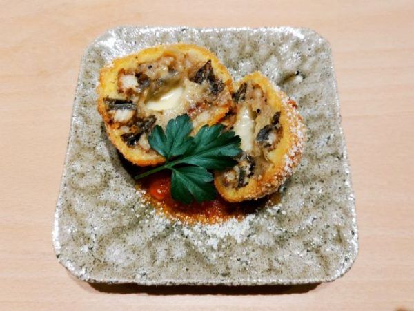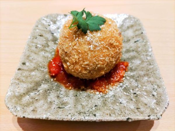 想像していたより大きくてボリューミー。上には、粉チーズがかけられ、コロッケの下にはトマトソースという見た目は、完全に洋風。イタリアンのようないでたちから、まさか鰻が中に入ってるなんて全く想像出来ません。