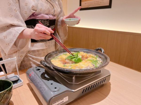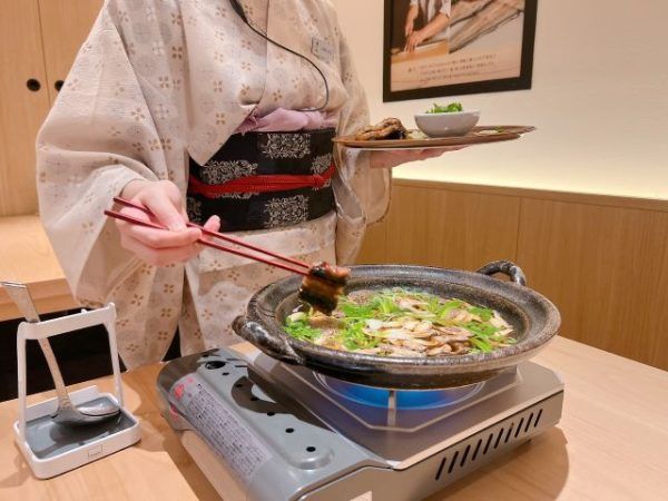 香ばしく焼き上げた鰻が入り、風味豊かなごぼうと一緒に、甘辛い割下でじっくりと煮込んでいきます。割下の良い香りがたまりません。