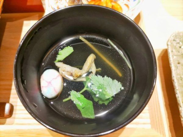 鰻屋さんに来たら、絶対セットでいただきたいのが「吸い物」の鰻の肝吸い。いいお出汁が出ていて美味しかったです。プリッとした肝も、いいですね。