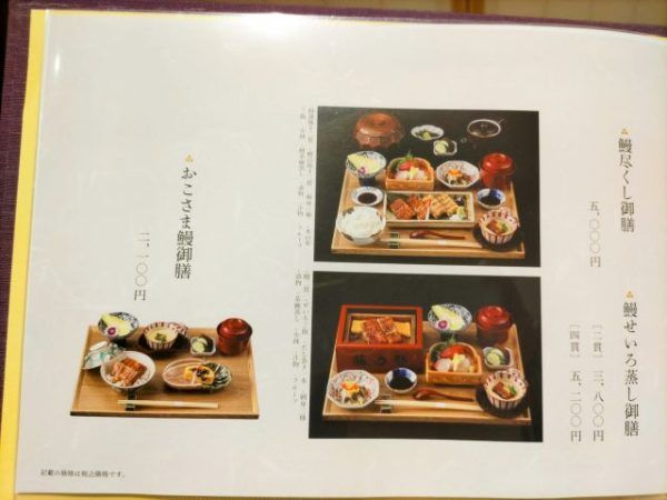 メニュー表には、鰻重、鰻せいろ蒸し、御膳、うなぎ単品、一品料理、コースなど、沢山の鰻料理がずらり。その中から、今回は気になったお料理をお願いしました。
