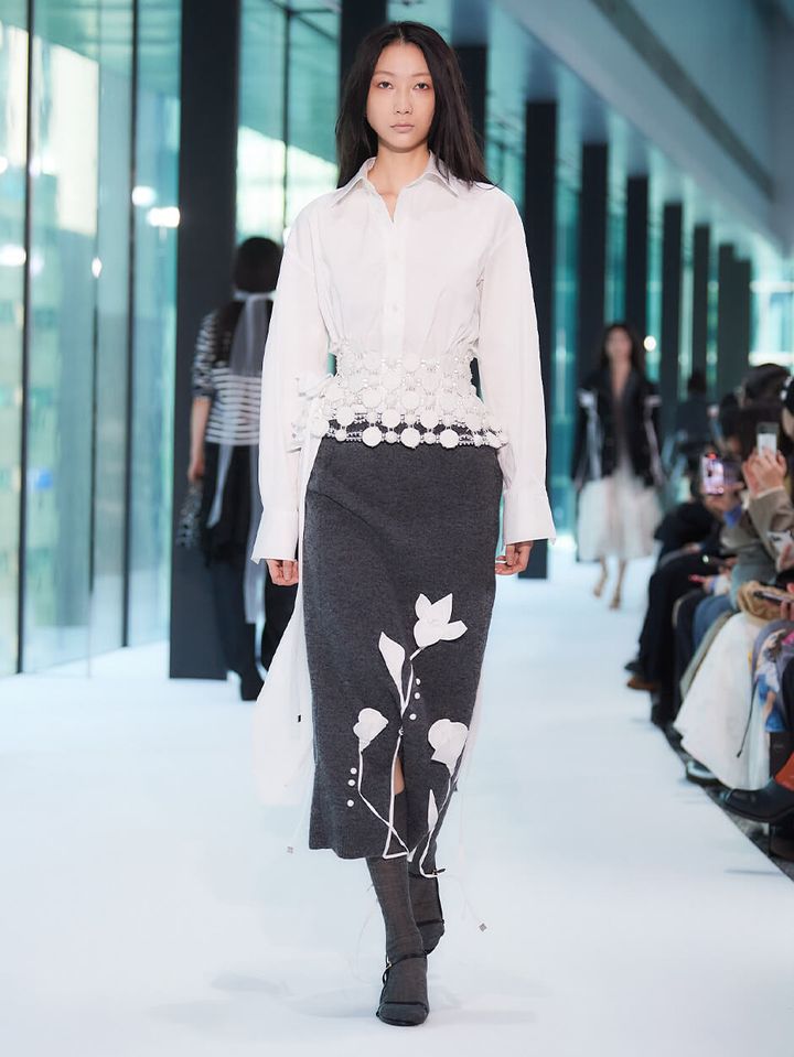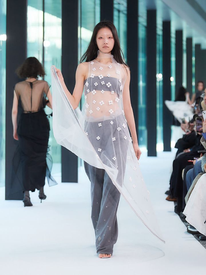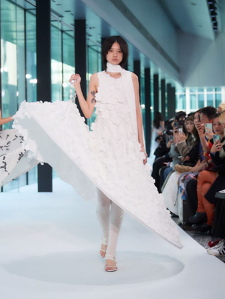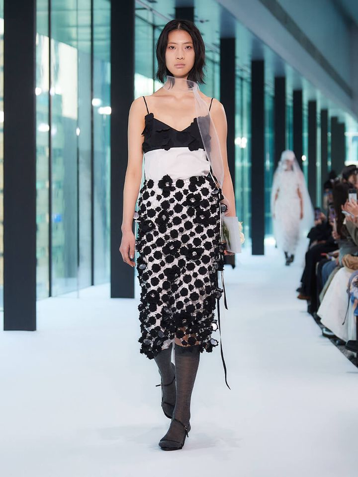 夢のようなクチュールライクな要素を含みながら、現実的な強さを感じさせるルックが強い印象を残し、特にショーのラストを飾ったワイヤー入りのドレスは、現代女性の相反する強さと儚さを体現している。