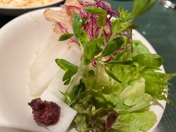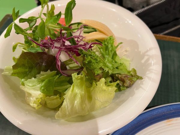 サラダの種類も野菜サラダ、大根サラダ、トマトサラダが選べて、ドレッシングはゴマドレ、和風ドレッシング、イタリアンドレッシングの3種類が付いてきます。 サラダは大きなボールにいっぱい盛られていて、野菜のお値段高騰しているご時世の中、たっぷり野菜を食べることが出来ます。