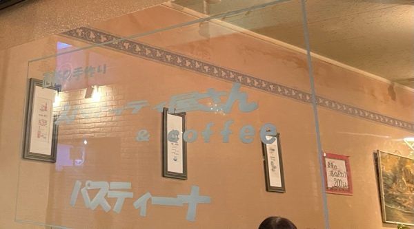 入口のガラス窓には「西新の手作りスパゲッティ屋さん&coffee パスティーナ」と書いてあります。