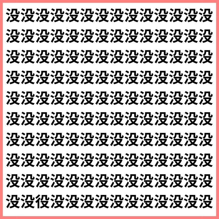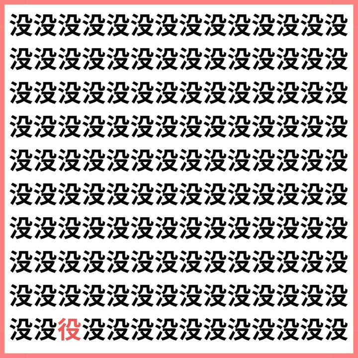 たくさんの「没」の中に、1文字だけ違う漢字が混ざっています。