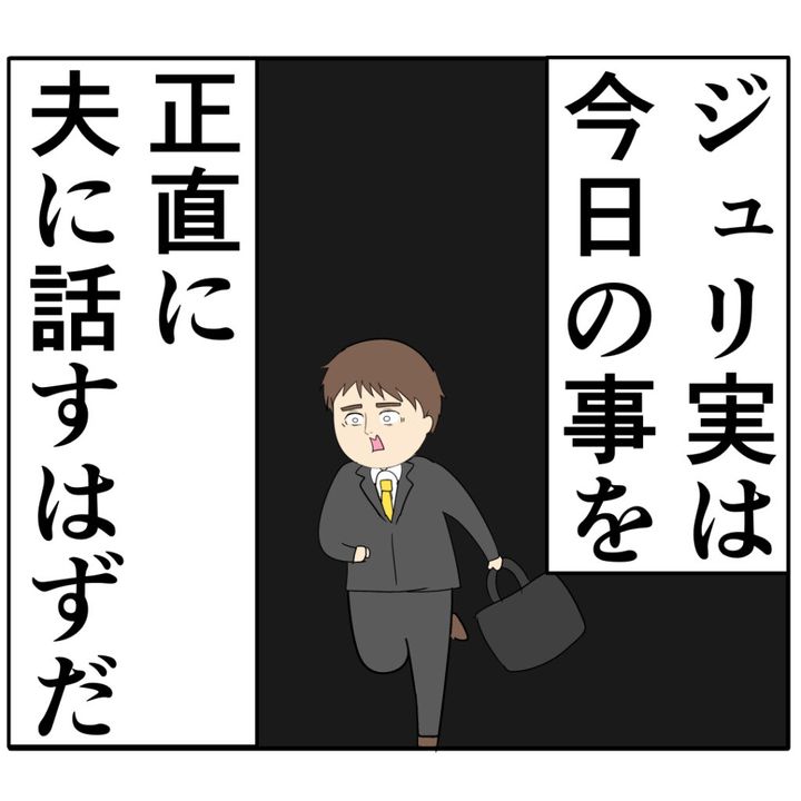 ろみ緒さんは走りながらこう思いました。「ジュリ実は今日の事を正直に夫に話すはずだ」