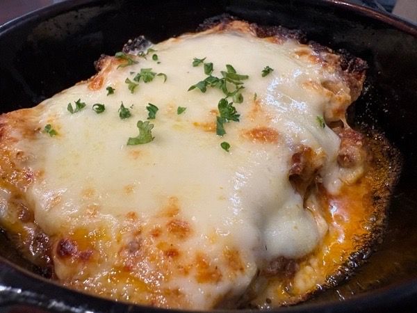 チーズたっぷりのラザニア。