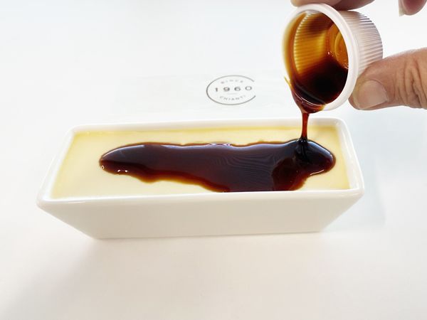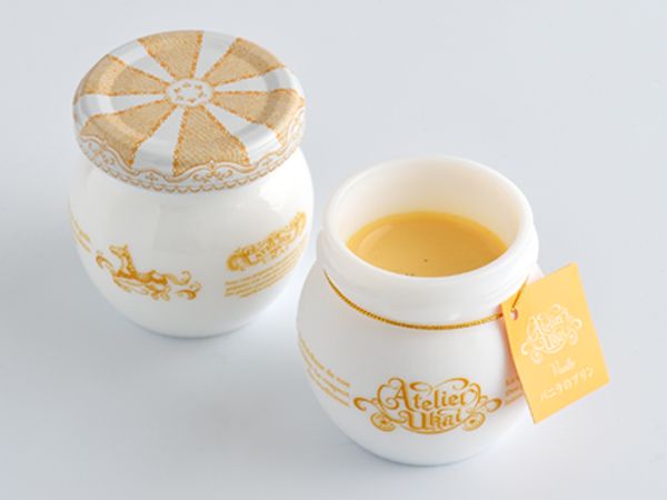 JR「品川」駅構内、「エキュート品川」にある「アトリエ うかい」。同店と「トリエ京王調布」店限定のプリンシリーズは、ころんとした丸い瓶がとにかくキュート。「バニラのプリン」は、卵、乳、砂糖、バニラのシンプルな素材のみ。口当たりがまろやかでとろりととろける食感が特長です。底にはカラメルソース、プリンにはバニラビーンズが入って風味も豊か。「バニラのプリン」のほか、「フロマージュプリン」や季節限定のプリンもあります。