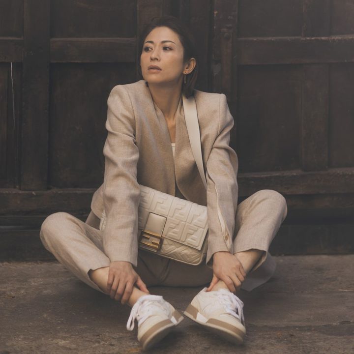 バッグ[バゲット][W27×H15×D6㎝]ストラップ付¥440,000スニーカー¥126,500シングルピアス各¥31,900(すべてフェンディ/フェンディ ジャパン)ジャケット¥88,000パンツ¥41,800(ともにハイク/ボウルズ)タンクトップ¥5,940(ビューティ&ユース/ビューティ&ユース ユナイテッドアローズ 丸の内店)