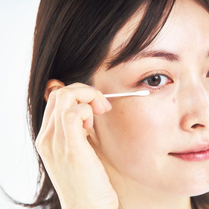 先でヨレを取ろうとするとアイメイク全体の崩れの原因に!ピンポイントで保湿しながらオフするのが正解です。