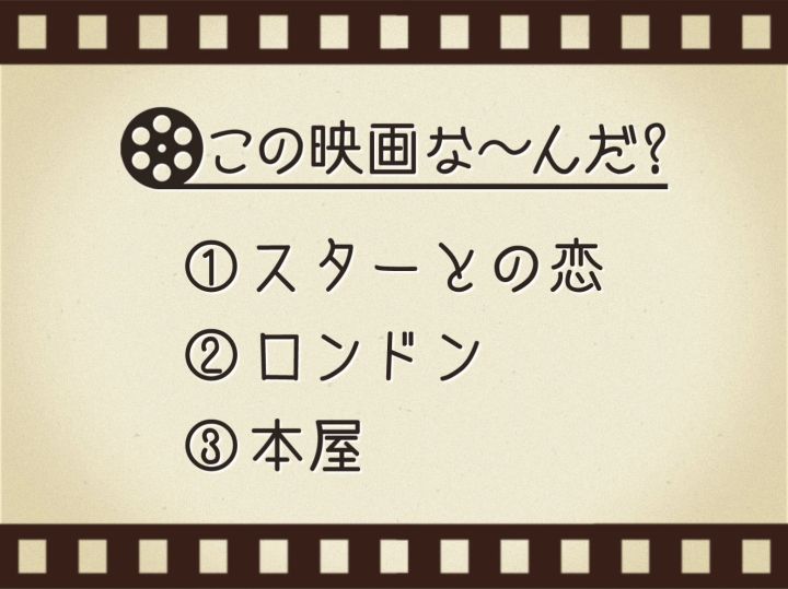 3. 【3つのヒントで映画を当てろ!】「スターとの恋・ロンドン・本屋」連想する名作は何でしょう?