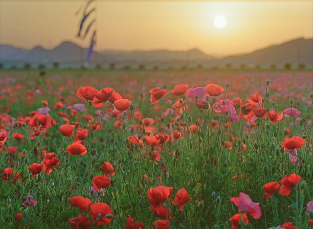 夕暮れ時のポピーが美しい ©道の駅笠岡ベイファーム