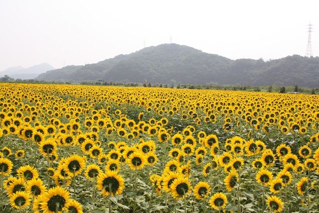 夏は100万本のひまわりが元気に咲き誇る ©道の駅笠岡ベイファーム
