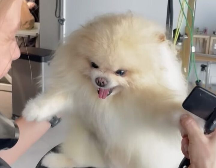 3. 「がぉー!!」ドライヤーに怒るポメラニアンさん