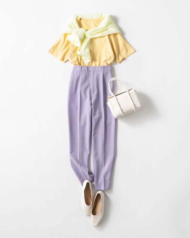 キレイ色配色パンツコーデ2.「パープル&イエロー」