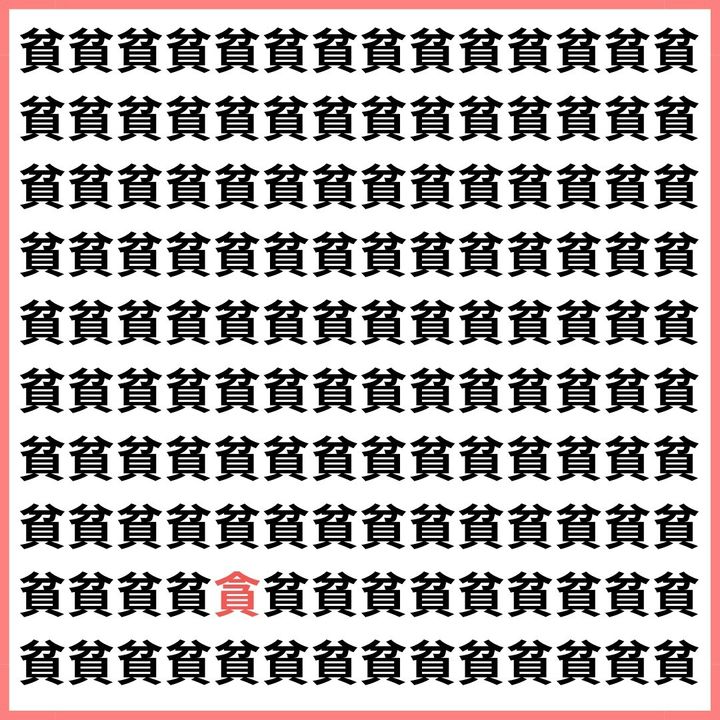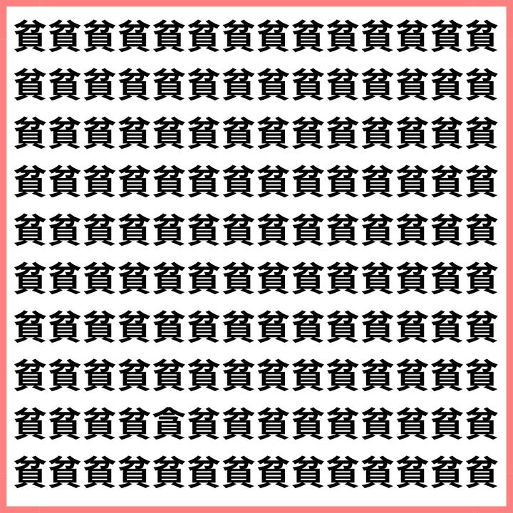 たくさんの「貧」の中に、1文字だけ違う漢字が混ざっています。