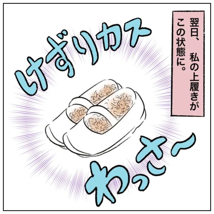 そして翌日、まるさんの上履きがけずりカスだらけに!!