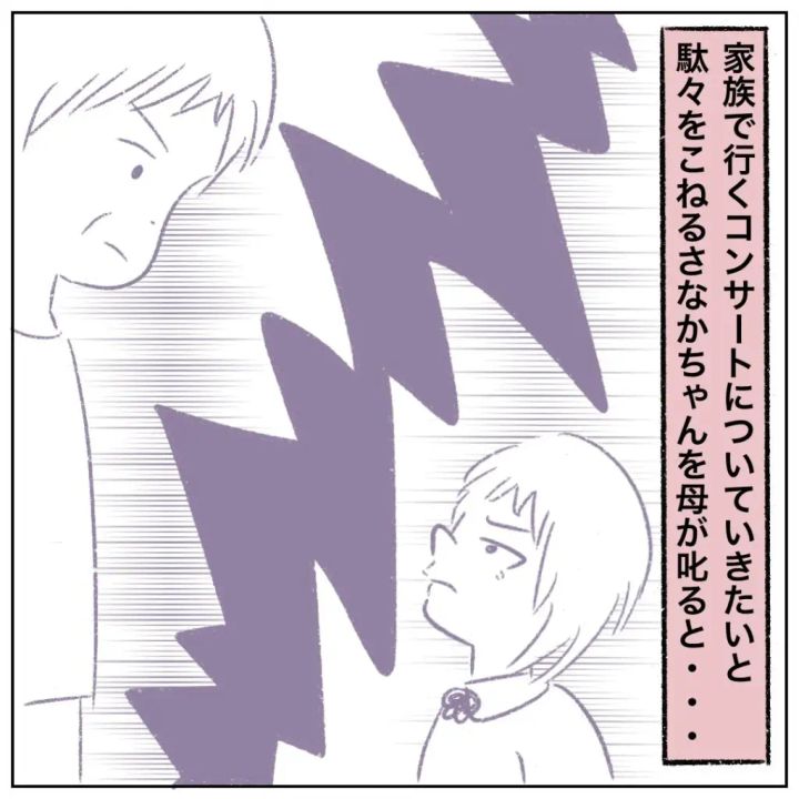 その頃、家族で行くコンサートについていきたいと駄々をこねる同級生のさなかちゃんのことを母が叱ると、
