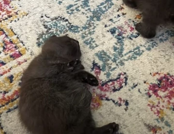 3. じゃれあいを横目にスヤスヤ エアフミフミが止まらない子猫さん