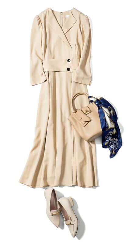 ワンピース¥42,900/アウディ―レ バッグ[スカーフ付き]¥8,800/オリエンタルトラフィック(ダブルエー) パンプス¥17,050/ダイアナ(ダイアナ 銀座本店)