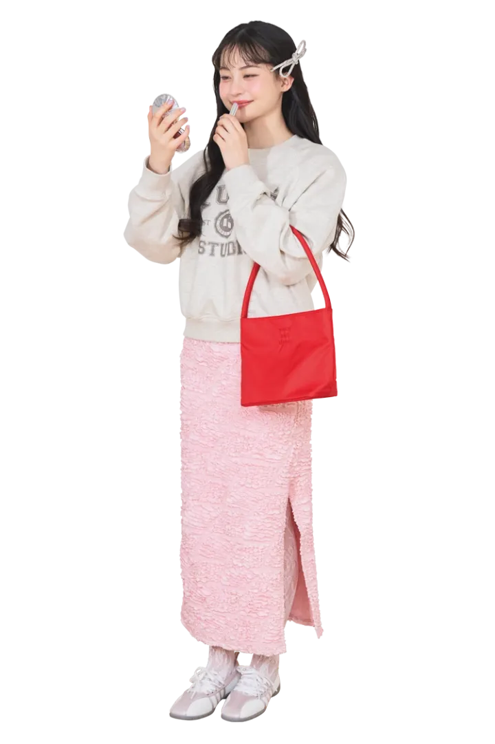 ダボっとフォルムのロゴスエットをあわせることでこなれ感を演出。蝶結び風のバレッタを耳元にあしらえば上品なオトナ女性へと風変わりできる♡