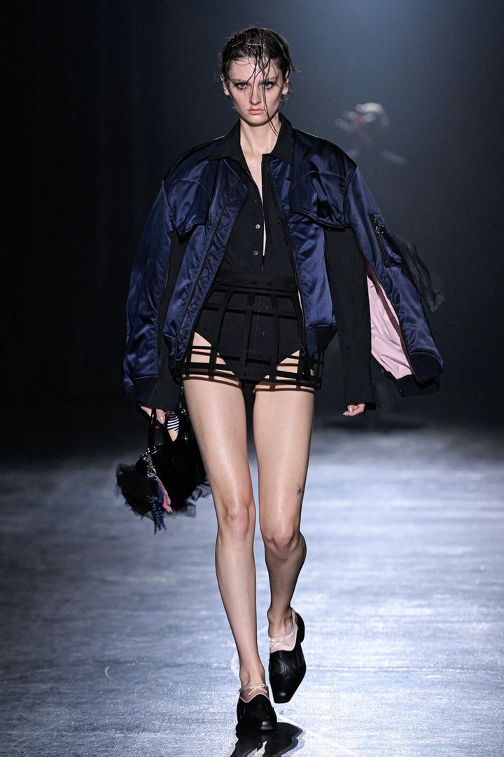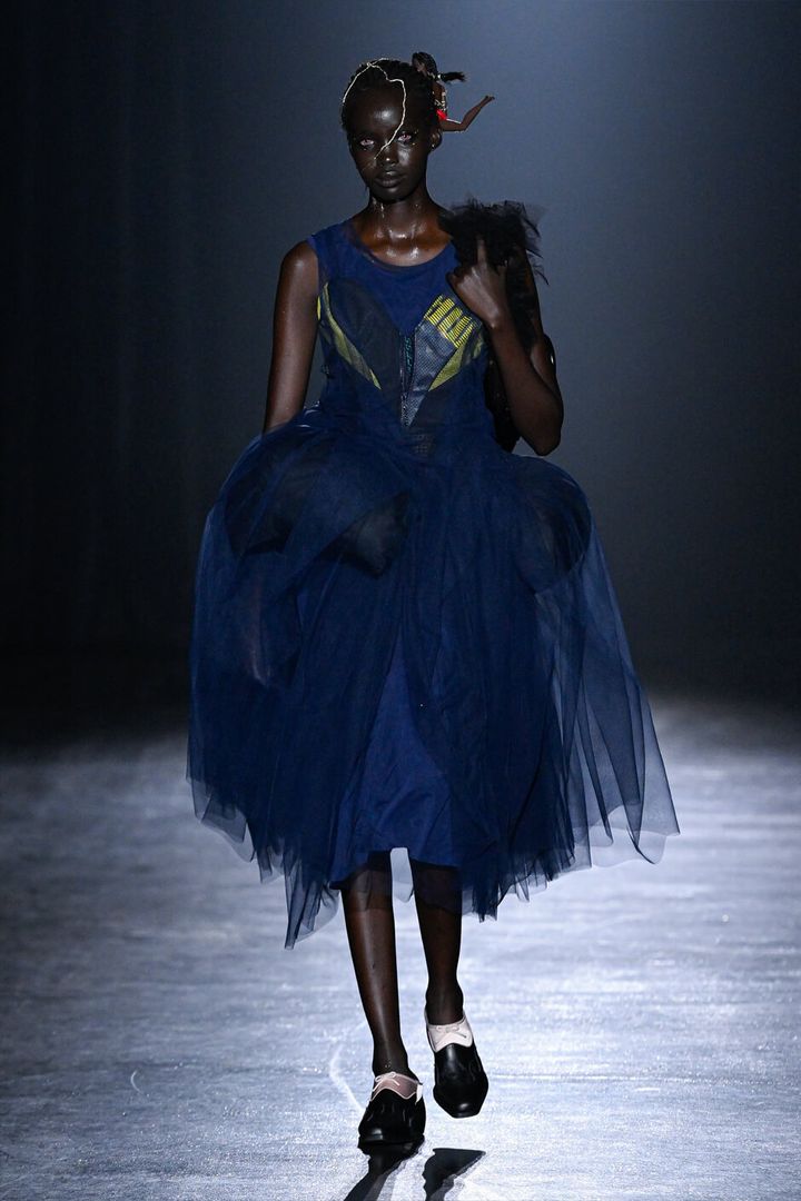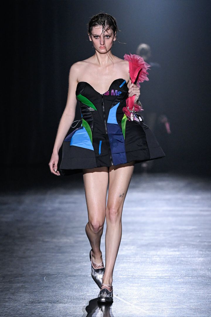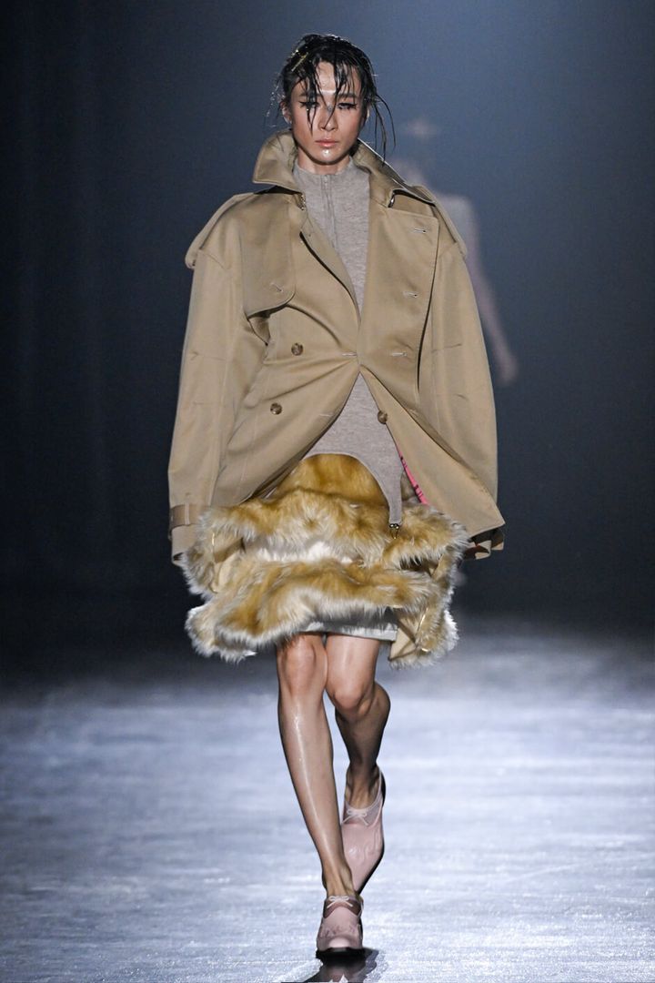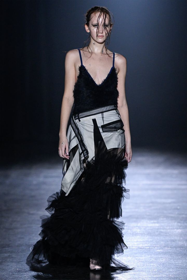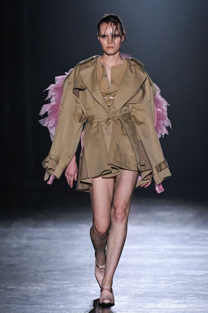 また、ファーやパファーといった新鮮なマテリアルが目を惹き、パニエやコルセット、チュールやレース、ビーズなどのブランドらしい要素と巧みに紡ぎ合わされていた。