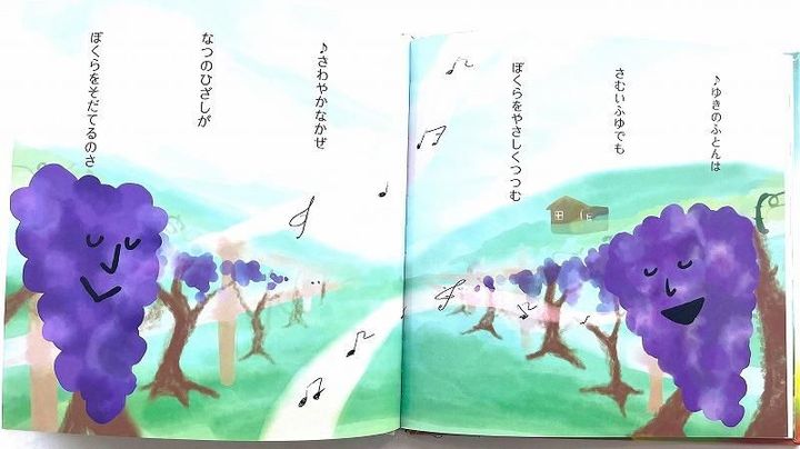 千葉さんお気に入りのページは、ブドウたちが気持ち良さそうに目を閉じて歌っているシーン。