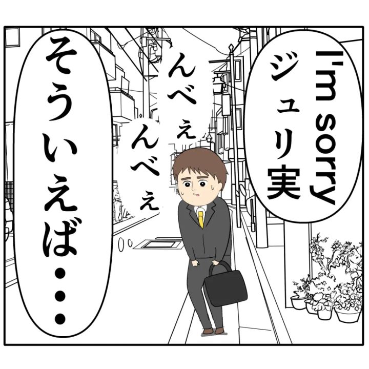 会社の近くでジュリ実さんに待ち伏せされていたろみ緒さんは、会ったり話したりしてはいけないと思い必死に走ってジュリ実さんを振り切りました。「I’m sorry.ジュリ実」心の中でジュリ実さんに謝るろみ緒さんは、ふと「そういえば」と思いました。
